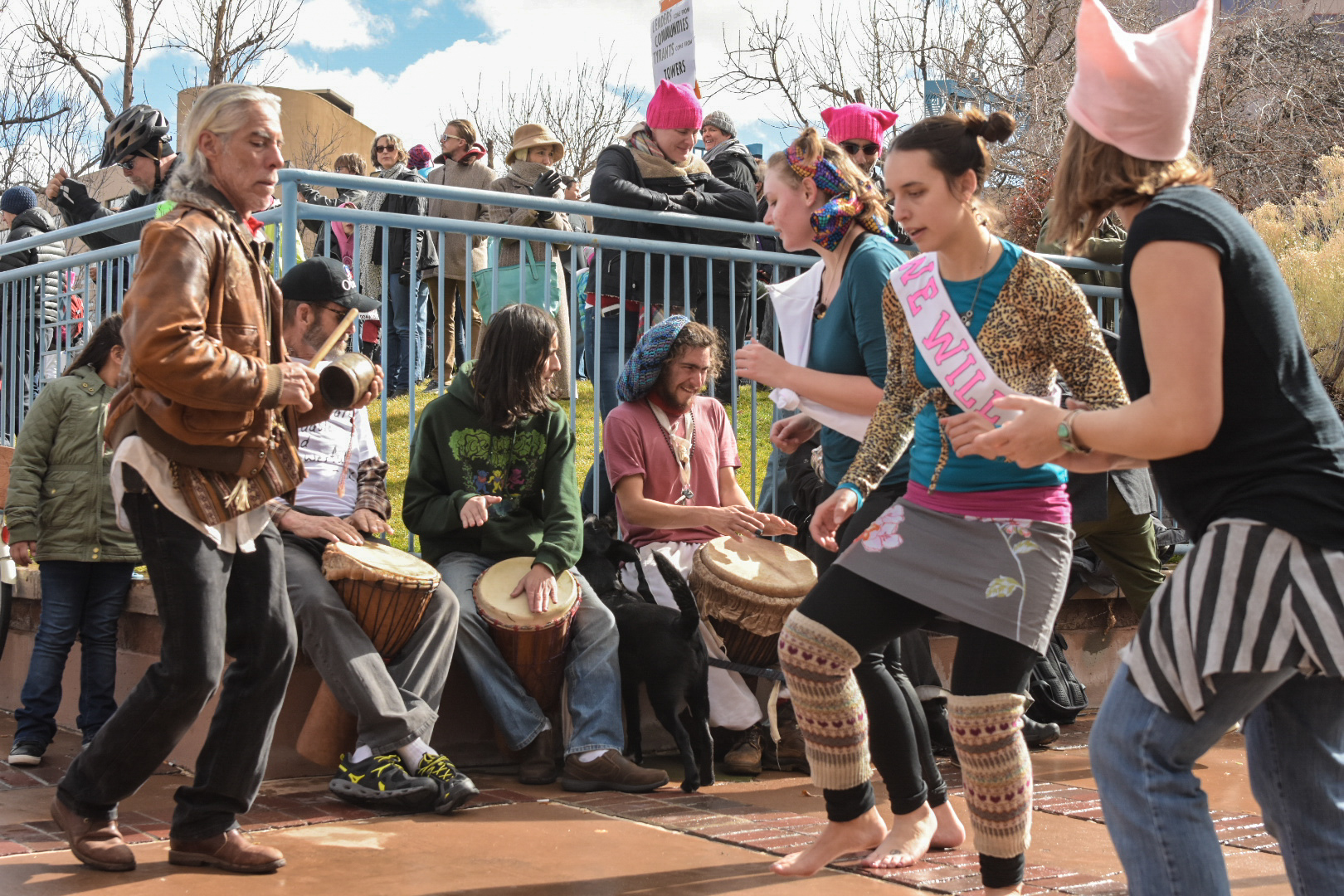 Musicians play music for participants of the Albuquerque Women’s Rally, Saturday, Jan. 21, 2017, in Albuquerque, N.M. (Kevin Maestas)